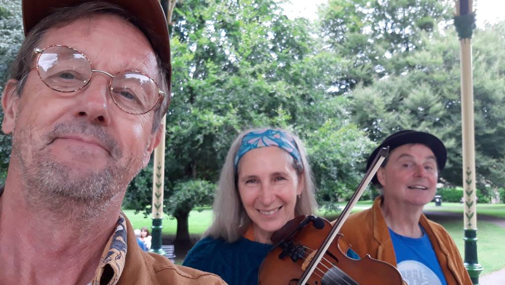 During Covid lockdown Ken discovered that Stu and Fi Finden of Whapweasel lived only a 5 minute walk across the Ouseburn valley from his house. They started to rehearse outdoors in back gardens and on grassy banks with Ken adding cello to their established duo repertoire. They sang in public as regulations slackened notably at the Hexham Bandstand in and Cumberland arms in 2022. Latterly they’ve been creating a ceilidh band with Ken on accordion and introducing Evie Clegg to the line up, on flute. Hear Little Big Blue
