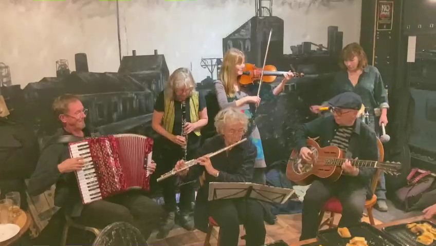 In 2004 Ellie Hare (and son Mattie Hare) of Amber Films were part of The Sage Gateshead World Community Carnival Band run by Ken. On a Wednesday night, after rehearsals, some band members would go to the Side Cafe allied with Amber Film’s Side Cinema. There was an informal session with folk musicians. And from this grew a performance band playing Klezmer, Balkan and Gypsy Jazz. Playing a monthly session at The Ship in Byker, they’ve played in Edinburgh, Seaham, Easington, France and local festivals. https://soundcloud.com/edwardsounds/a-nakht-in-gan-eydn-a-night-in-the-garden-of-eden?si=cda08a500a4542ab9e2b4bd48b0f9972&utm_source=clipboard&utm_medium=text&utm_campaign=social_sharing
