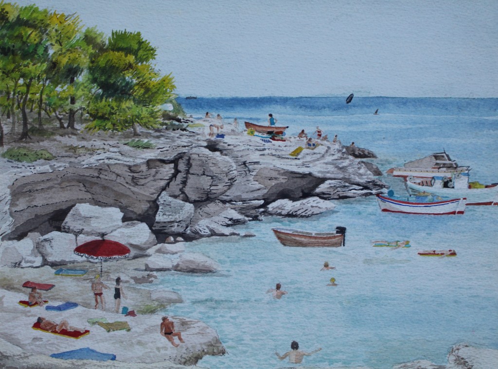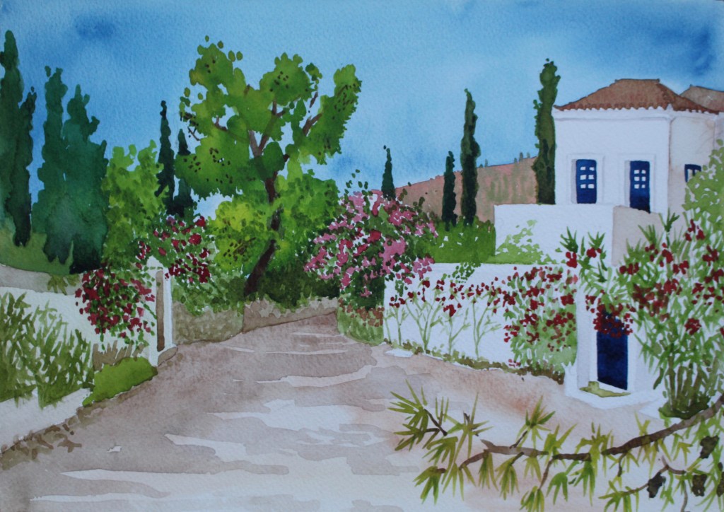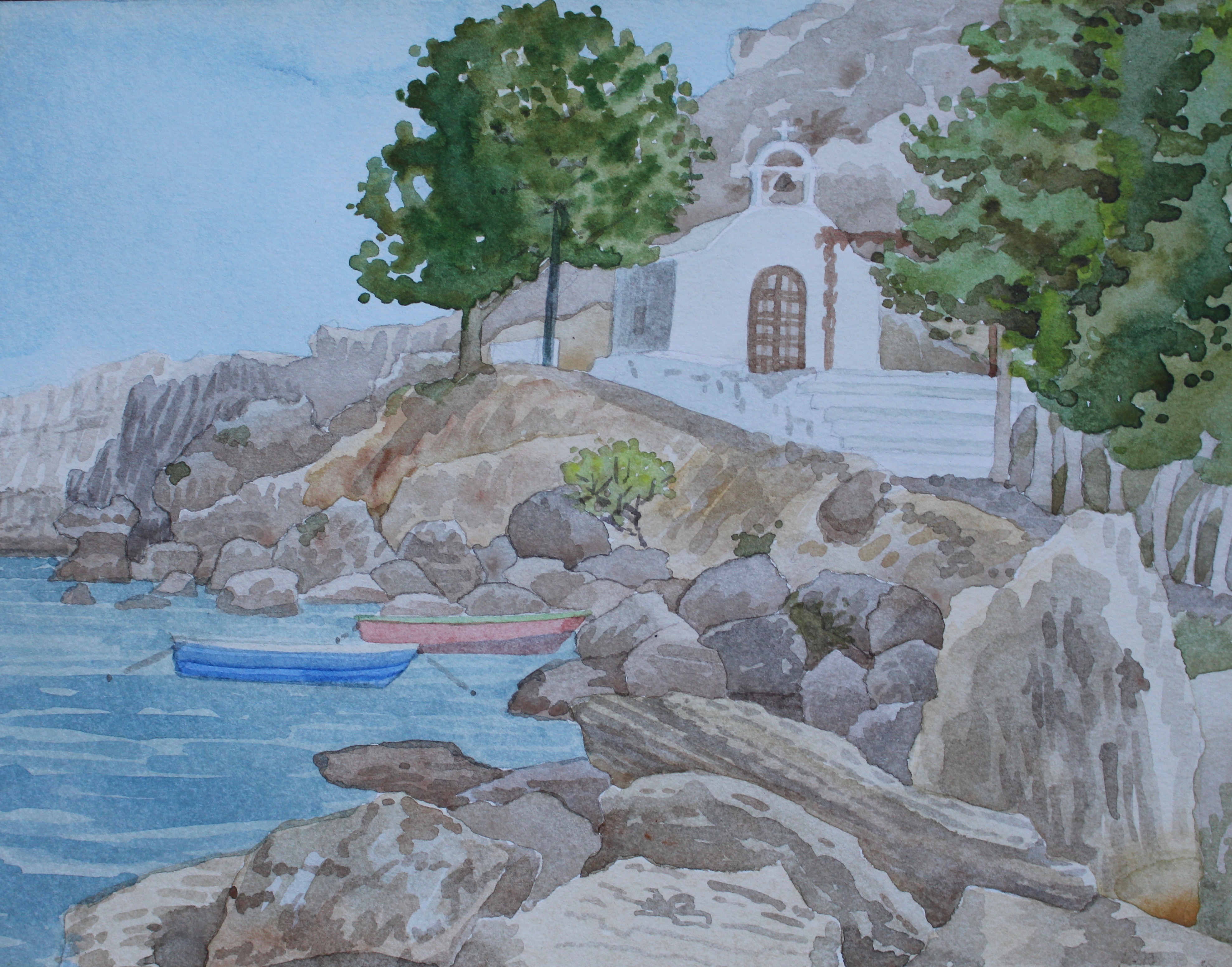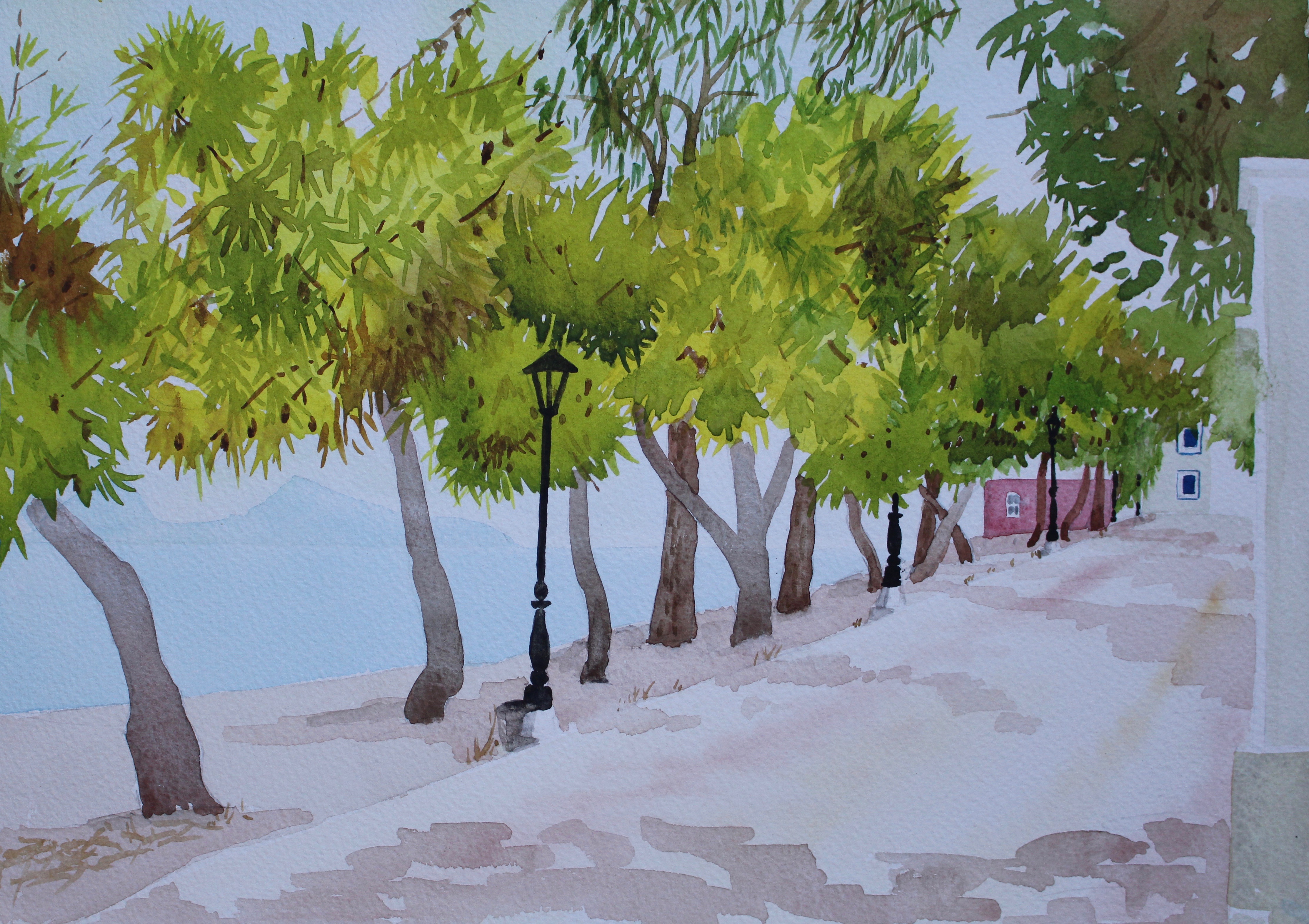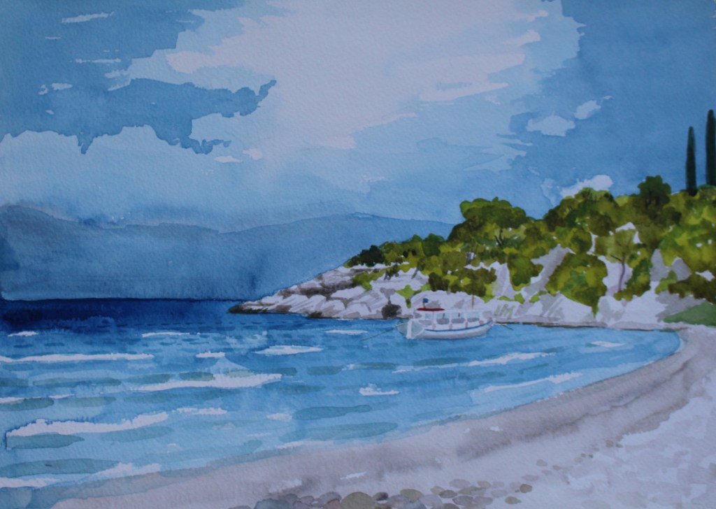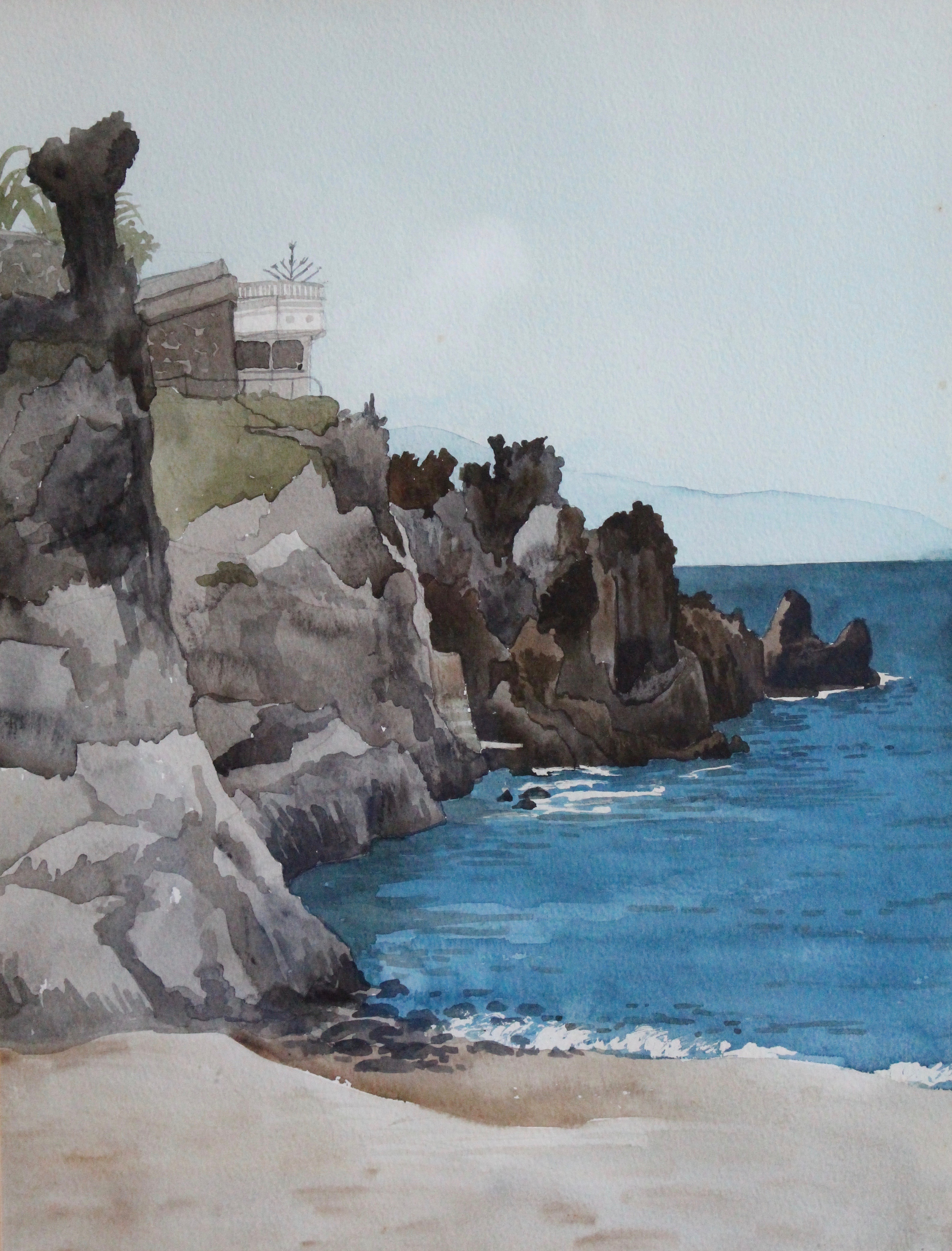At university he was called upon to create graphic designs for posters. And in the late ’80s he started to paint water colour sketches, mostly on holiday, a habit that has continued.