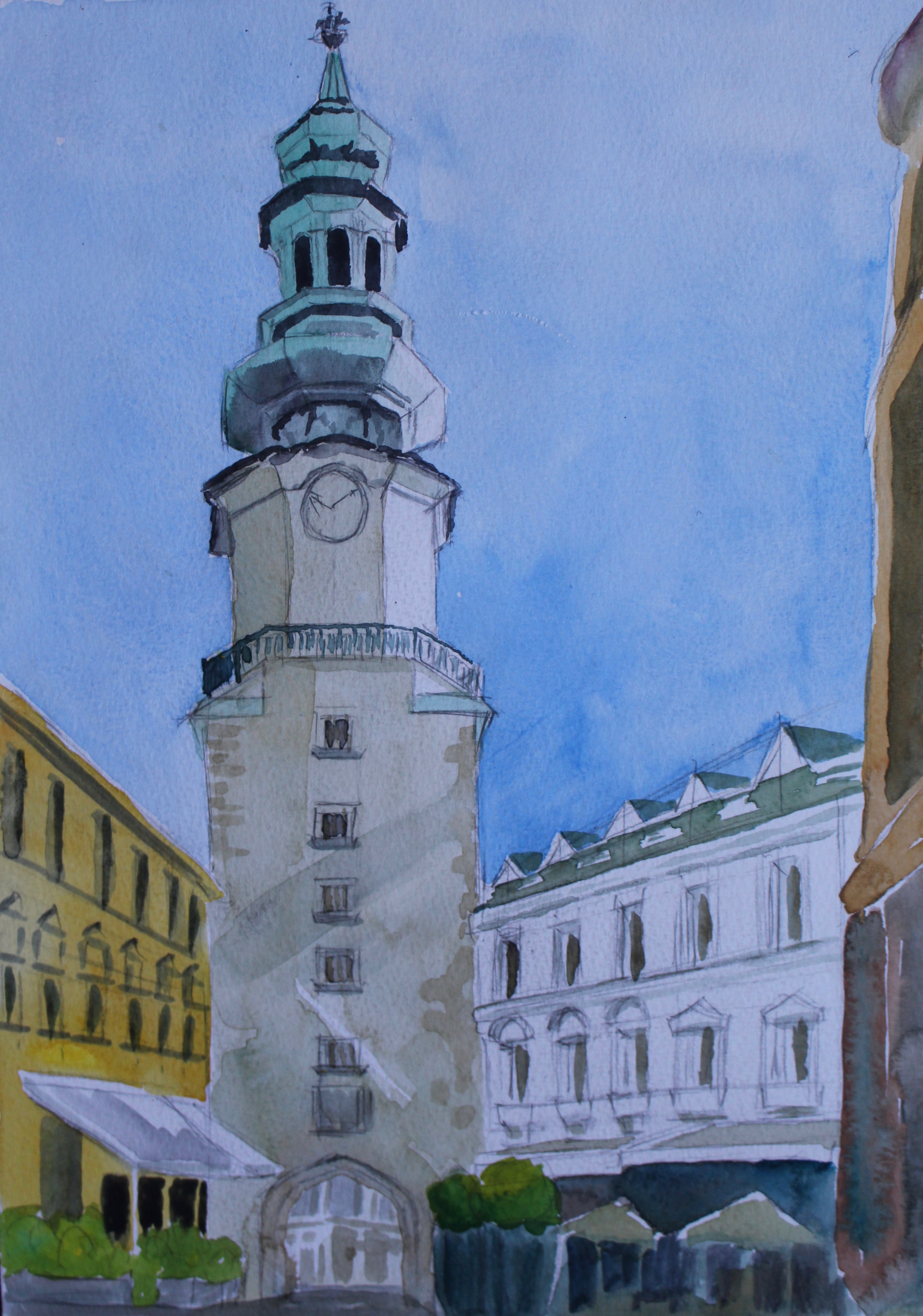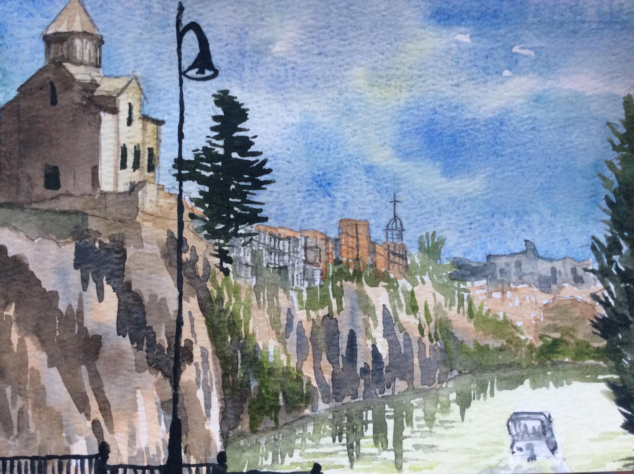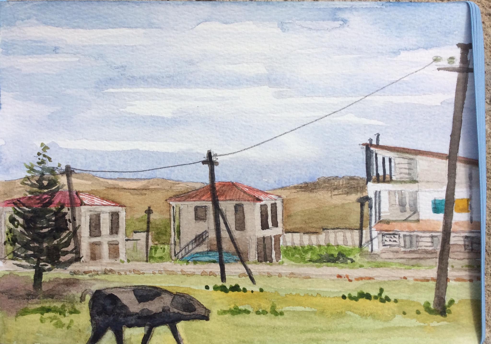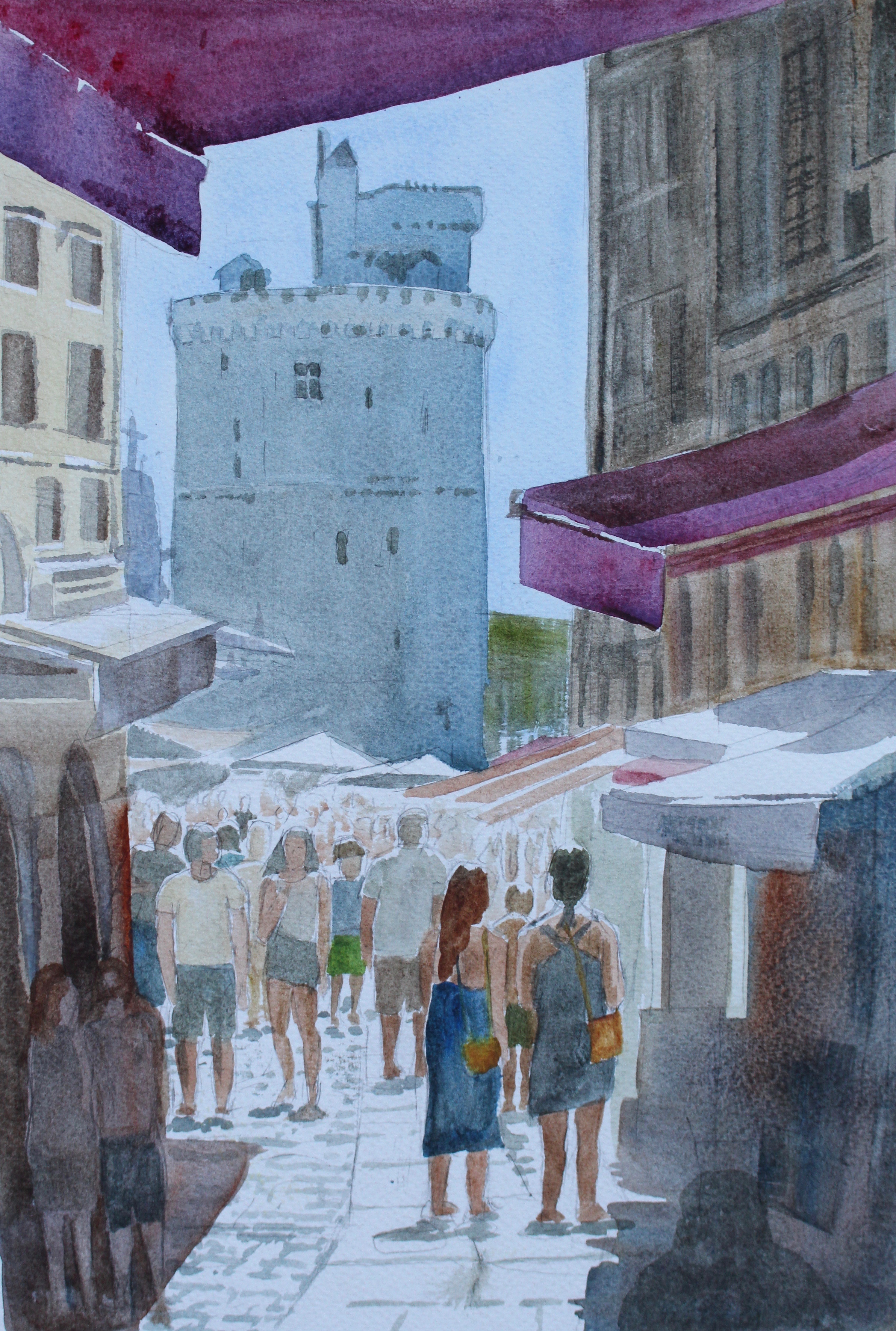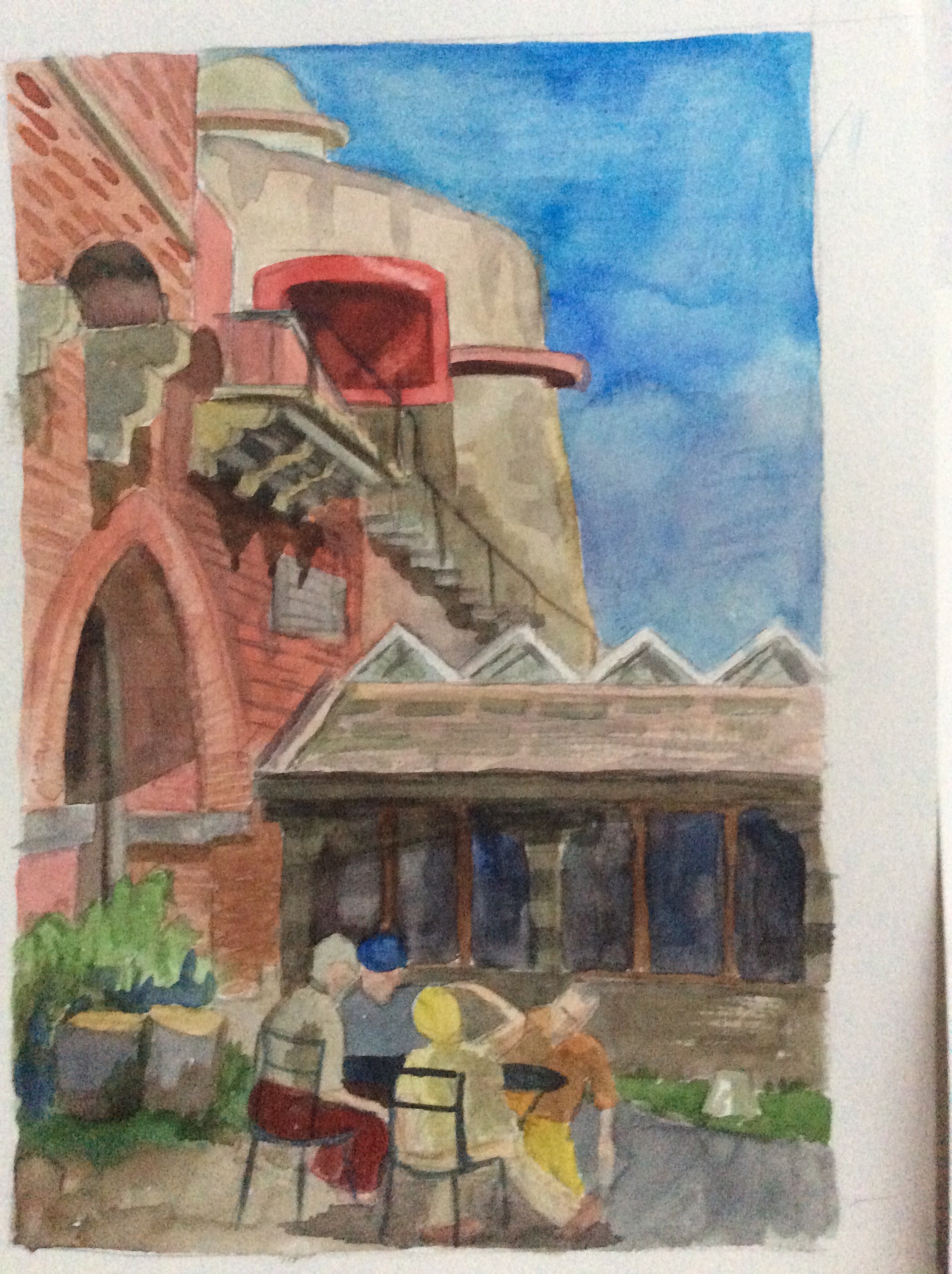 At university he was called upon to create graphic designs for posters. And in the late ’80s he started to paint water colour sketches, mostly on holiday, a habit that has continued.