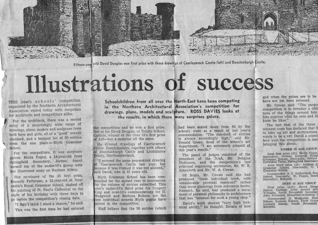 He won a schools Norther Architectural Art Competition in 1967, with further wins in the following year. Academically he took a science route through his school career. But in the Lower VIth form there was an opportunity to do a practical Art O’Level within a year and he lapped up this experience.