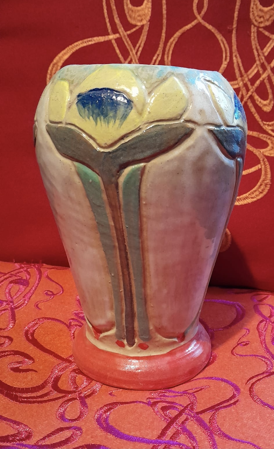Starting in 2010, Ken has attended weekly sessions at the Cluny Pottery in Byker, Newcastle upon Tyne, mentored by David Pyrke. A selection of large coiled pots: ‘The Pot of Basil’, and the ‘Life Pot’ have been created. Many household pots thrown on the wheel: ‘Blue RARE Goblet’, teal pots, bowls , plates, cheese domes and caked stands. Cast pots from Ken’s original ‘Snow Bear’ sculpture then raku fired. And a slab pot in the form of a clock.