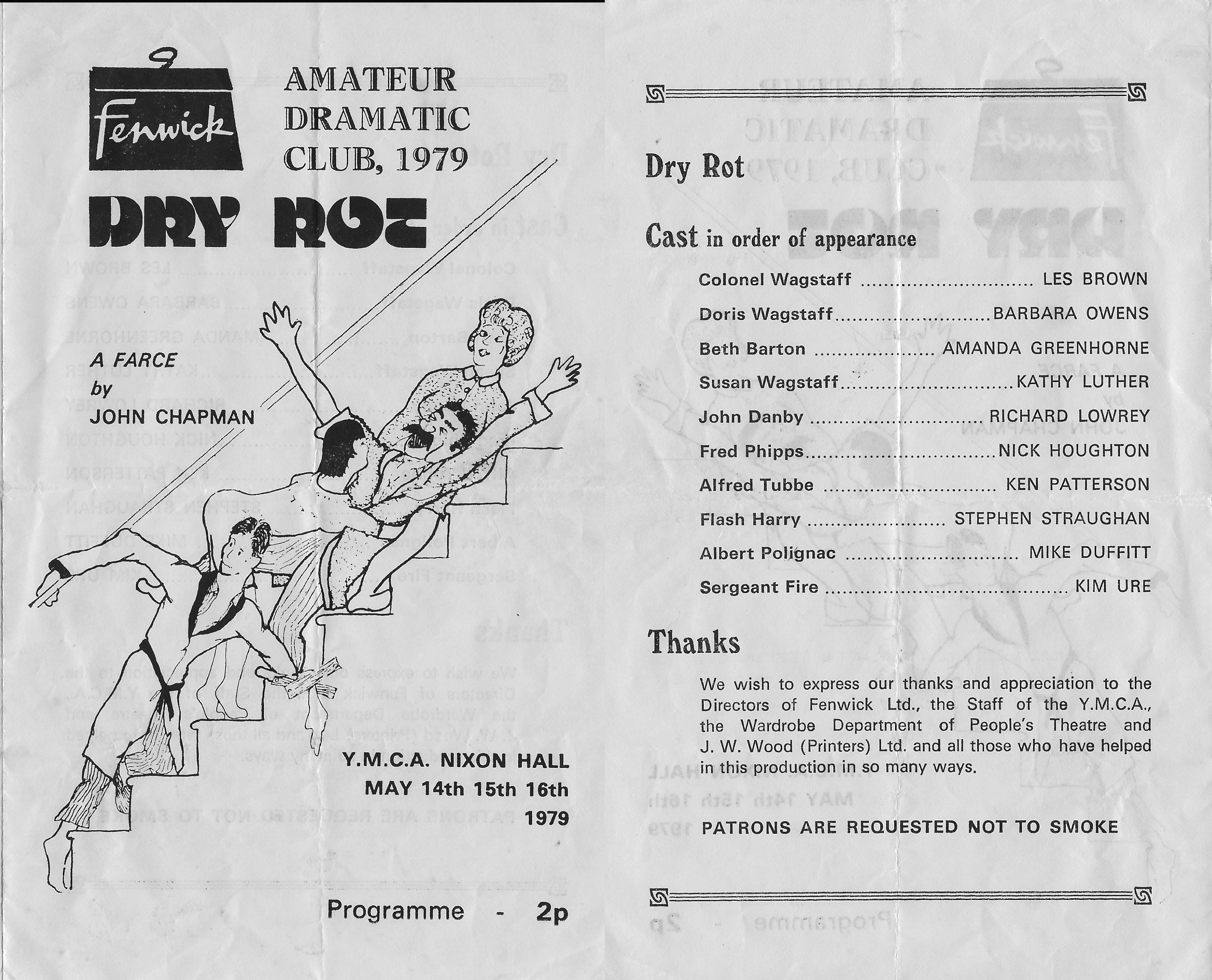 A farce by John Chapman. Ken: ‘despite being a skinny young 24 year old was cast as the bookie Alfred Tubbe. The climax of his performance being the last line of the first half at the race course: ‘And they’re off!’ upon which his suit trousers fell to the floor’.
